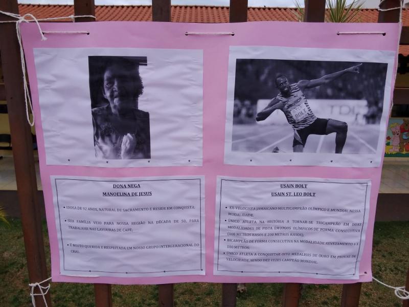 Também está sendo realizada uma exposição com personalidades negras, históricas e atuais, de nossa cidade, do Brasil e mundo, na parte externa do CRAS.
