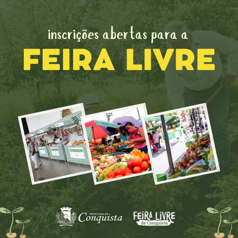 A Prefeitura Municipal de Conquista comunica aos interessados, que estão abertos os cadastros para a Feira Livre.