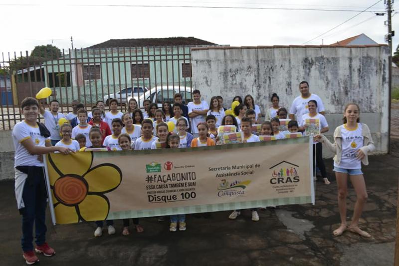 A equipe do CRAS de Conquista também realizou na cidade ,neste sábado 18/05, uma caminhada em Conscientização do Combate ao Abuso e Exploração Sexual de Crianças e Adolescentes que é nacionalmente comemorado neste dia 18 de maio.