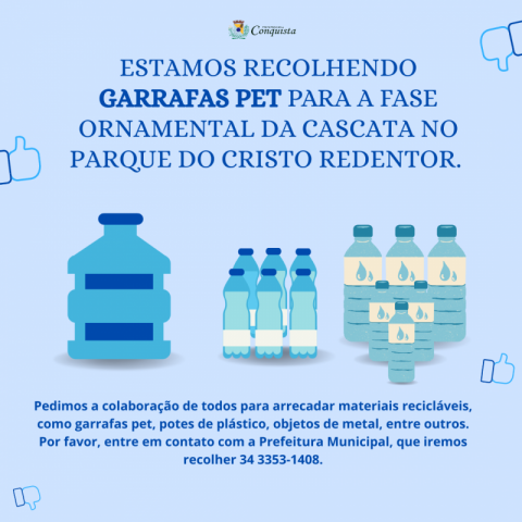 Colabore com a doação desses materiais e faça parte dessa ação sustentável, entre em contato com a Prefeitura Municipal, que iremos recolher: 34 3353-1408.