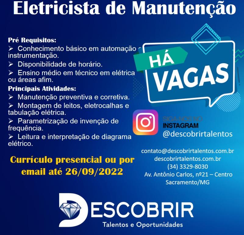 A empresa Descobrir Talentos e Oportunidades, parceira da Prefeitura Municipal, está com vagas abertas.