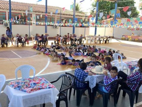 Mantendo a tradição, e seguindo a orientação do grupo de trabalho que foi constituído para tratar da segurança de nossas crianças, envolvendo Polícia Militar, Ministério Público, Secretarias e outros órgãos, as Escolas Municipais Dr. Prado Lopes e São Domingos, realizaram o Dia Junino, com quadrilha, comidas típicas e muita diversão.