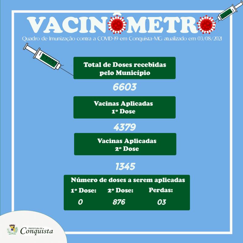 Total de Doses recebidas do Governo de Minas para a imunização dos cidadãos conquistenses conforme as diretrizes do Plano Municipal de Imunização.