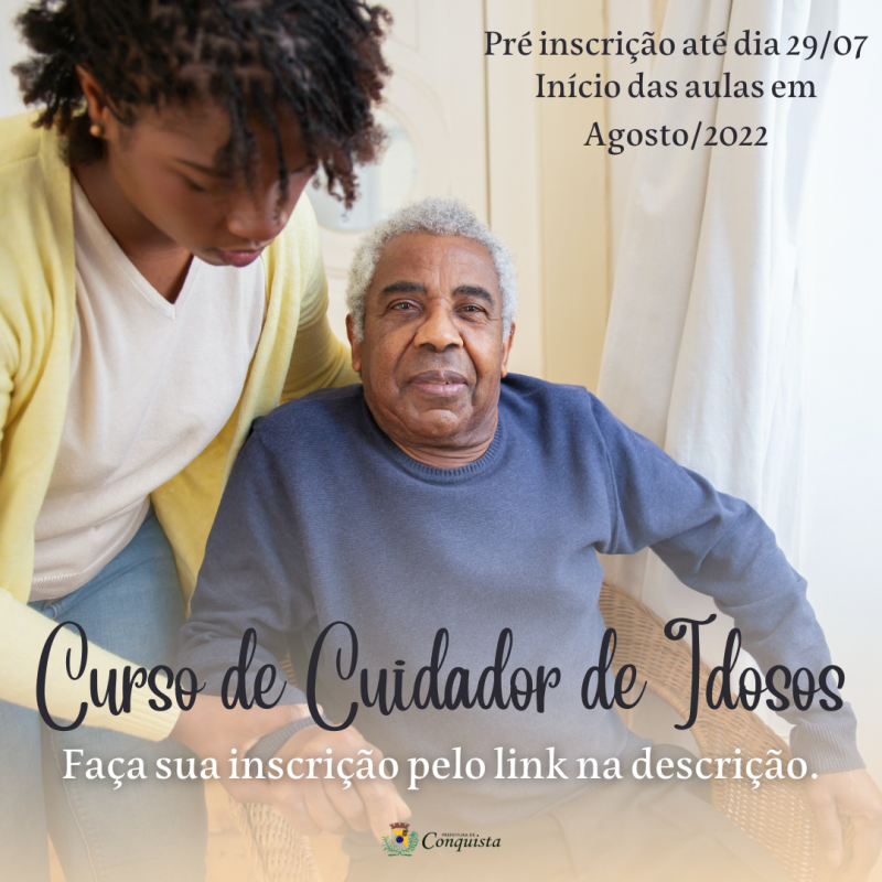 A Prefeitura Municipal, por meio da Secretaria de Assistência Social, informa a população que estão abertas as vagas para o curso de Cuidador de Idosos.